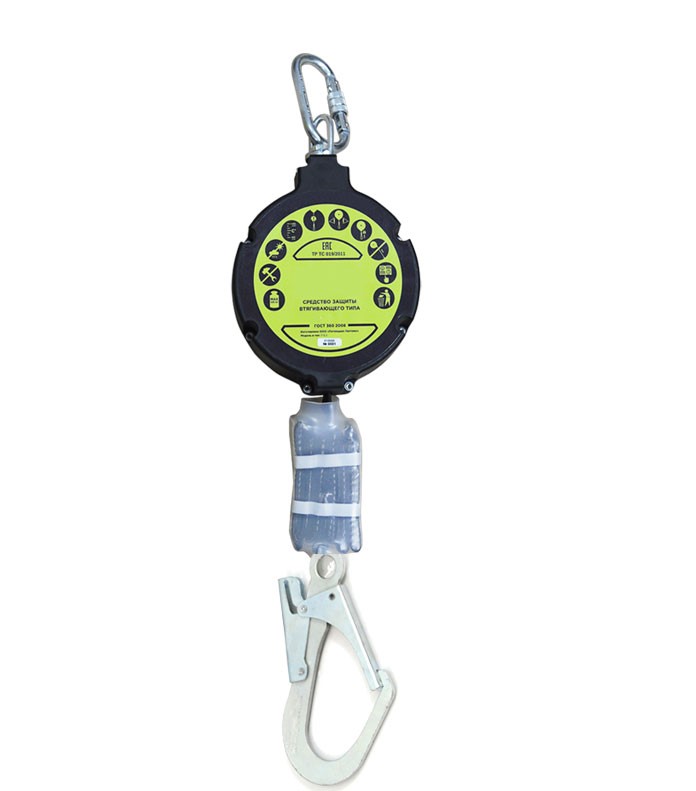 Используемый механизм втягивания ленты уменьшает глубину возможного падения, осуществляет быструю блокировку, уменьшая нагрузку и риск получения травмы при падении.