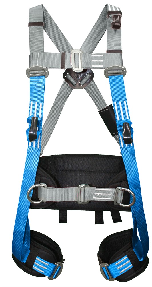 Страховочная привязь с широким поясом для фиксации спины, имеет две точки крепления стропа для от падений — со стороны спины и груди. Данная модель имеет широкую грудную лямку. Отрегулировать привязь по удобной для вас ширине возможно при помощи регуляторов, на ногах, на плечах, на груди. Одно D-образное кольцо на спине (снабжено удлинителем стропа, выводящим устройство в зону досягаемости работника) На ногах для вашего комфорта предусмотрены мягкие накладки.