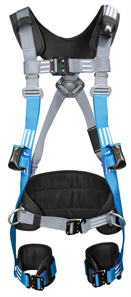 Состоит из наплечных регулируемых лямок с пряжками (типа мама/папа) и V-образной мягкой накладкой(для обеспечения комфорта пользователей при длительной работе на высоте), набедренных регулируемых лямок с пряжкой(фаст) с мягками накладками (для обеспечения комфорта пользователей при длительной работе на высоте) , поясного ремня с пряжкой пряжкой(фаст), нагрудная лямка с пряжкой (фаст), кушака, двух D-колец на поясе (для удержания и позиционирования), двух петель на груди (для спасательных работ, экстренной эвакуации) и одного D-кольца на спине (для страховки). Информационная бирка в чехле. Привязь упакована в водонепроницаемый пакет и содержит паспорт и инструкцию по применению.
