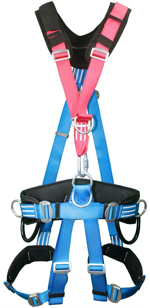 ССП-5 - Страховочная привязь парашютного типа с наплечными и набедренными лямками которые регулируется самофиксирующимися пряжками, двумя элементами крепления стропа для страховки(на груди и спине) и тремя - для удержания и позиционирования(на поясе).
