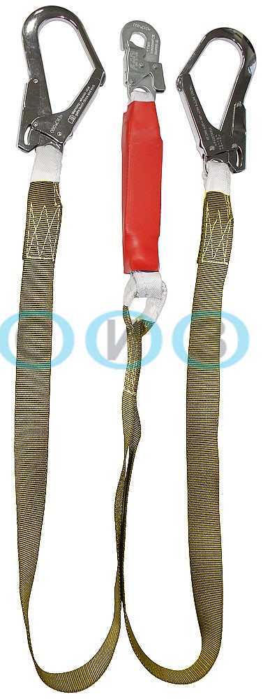 Строп аАд К50+К20 NL - сстраховочный строп, двойной (двуплечий) из арамидной лентыс амортизатором, с двумя большими монтажными карабинами и одним малым монтажным карабином.