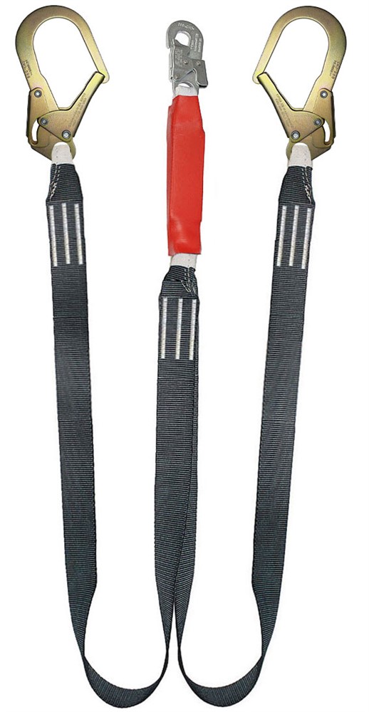 Строп аАд К60+К20 NL - страховочный строп, двойной (двуплечий) из полиэфирной ленты с амортизатором, с двумя большими монтажными карабинами и одним малым монтажным карабином