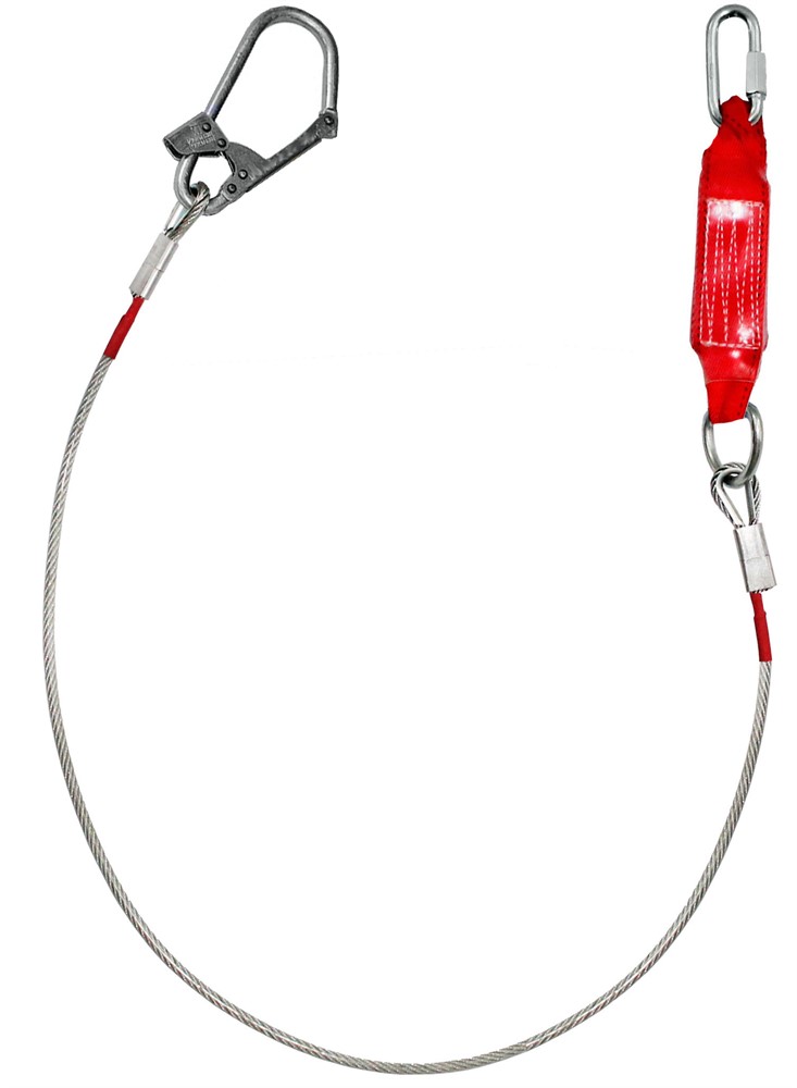 Строп аБ К50+Кс - страховочный строп из металлического троса в ПВХ оболочке с амортизатором, большим монтажным и соединительным карабином.