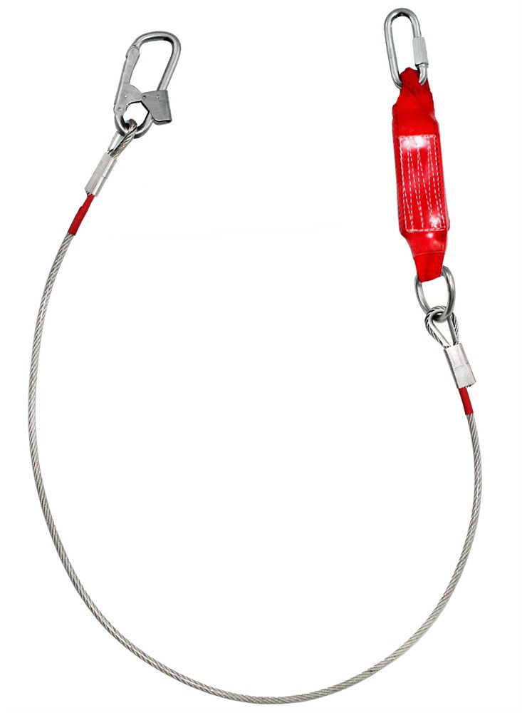 Строп аБ+Кс - страховочный строп из металлического троса в ПВХ оболочке с амортизатором, монтажным и соединительным карабином.