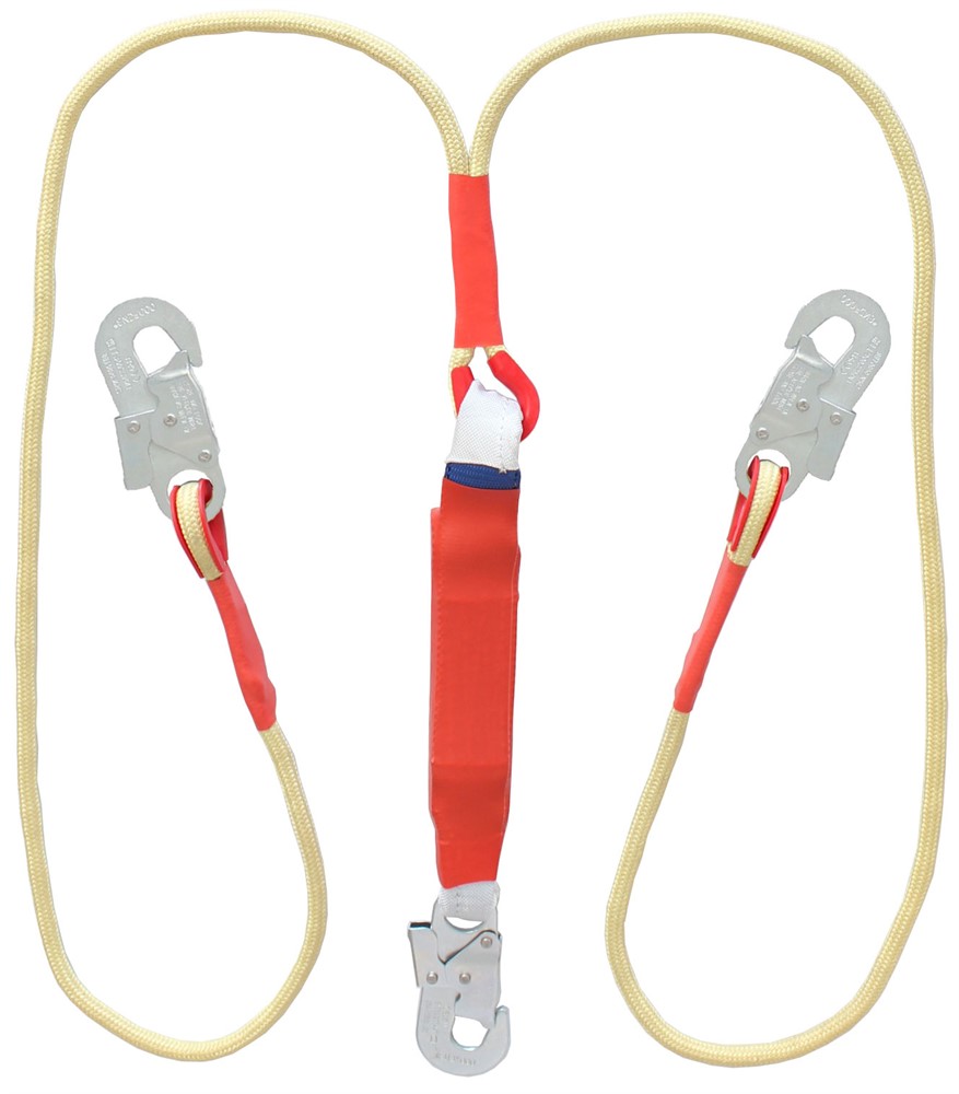 Строп аВерд К20+К20 NL - страховочный строп, двойной (двуплечий) из каната с оплеткой из арамидного огнеупорного волокна с амортизатором в чехле из огнеупорного материала и тремя малыми монтажными карабинами.