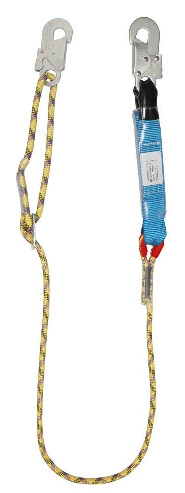 Строп аВрег К20+К20 NL (канат в оплетке) - страховочный регулируемый строп из капроновой верёвки с амортизатором и двумя малыми монтажными карабинами.