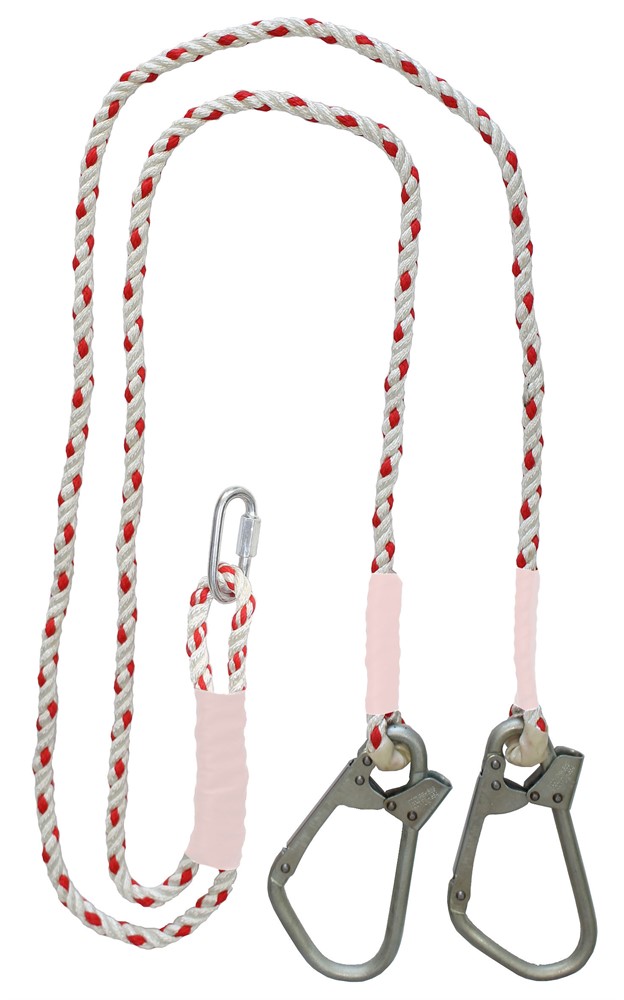 Строп Вд К50+Кс (канат) - страховочный строп, двойной (двуплечий) из полиамидного каната, двумя большими монтажными и одним соединительным карабином.