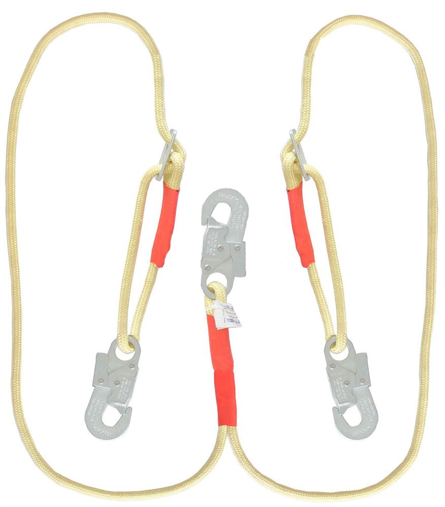 Строп Веррегд К20+К20 NL - страховочный регулируемый строп, двойной (двуплечий) из каната с оплеткой из арамидного огнеупорного волокна с тремя малыми монтажными карабинами.