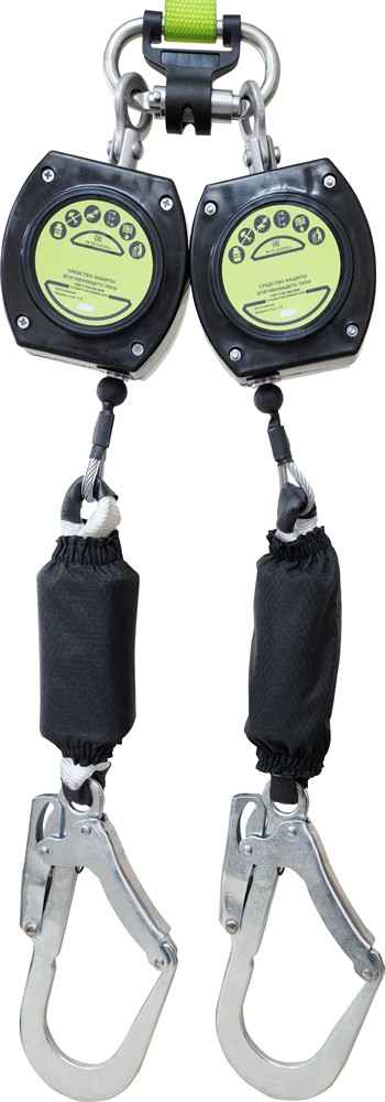 Используемый механизм втягивания троса уменьшает глубину возможного падения, осуществляет быструю блокировку, уменьшая нагрузку и риск получения травмы при падении.