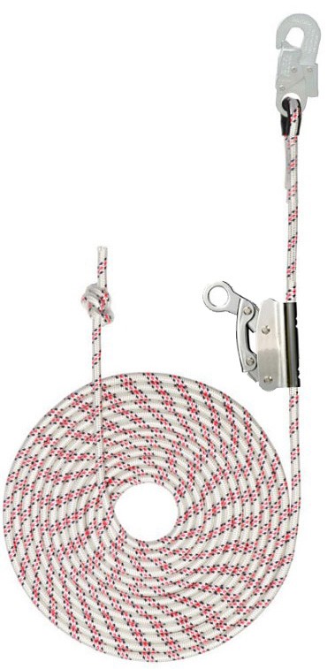 Зажим на гибкой анкерной линии ползункового типа (не разёмное страховочное устройство ползункового типа, оснащенное автоматическим замыкающим механизмом. Материал – сталь с гальванопокрытием. Используется с канатом с сердечником низкого растяжения диаметром 12 мм., конец стропа зашит в пластиковковый коуш с одной стороны и с другой сторон концевой ограничитель(узел). Комплектуется карабином К20 NL раскрытие зёва карабина 18мм. и блокирующим устройством ползункого типа.