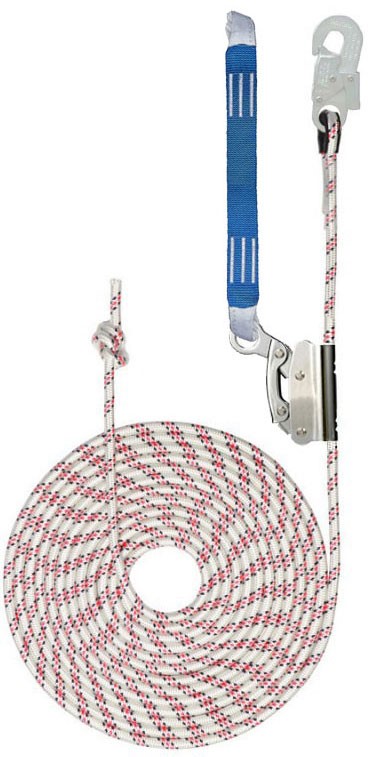 Зажим на гибкой анкерной линии ползункового типа (не разёмное страховочное устройство ползункового типа, оснащенное автоматическим замыкающим механизмом. Материал – сталь с гальванопокрытием. Используется с канатом с сердечником низкого растяжения диаметром 12 мм., конец стропа зашит в пластиковковый коуш с одной стороны и с другой сторон концевой ограничитель(узел). Комплектуется карабином К20 NL раскрытие зёва карабина 18мм. и блокирующим устройством ползункого типа со стрпом А (0,5 метра).