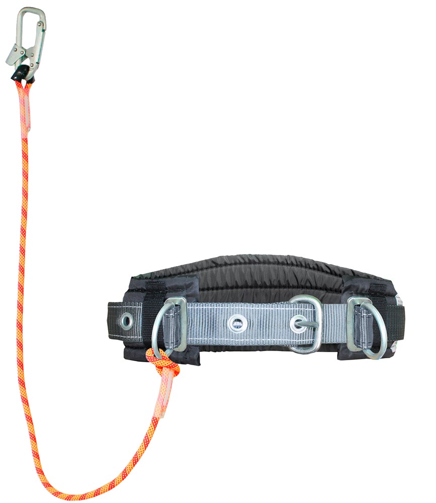 Состоит из ремня с пряжкой, уширенного кушака, двух D-колец и стропа из полиамидного каната с монтажным карабином. Пояс упакован в водонепроницаемый пакет и содержит паспорт и инструкцию по применению.