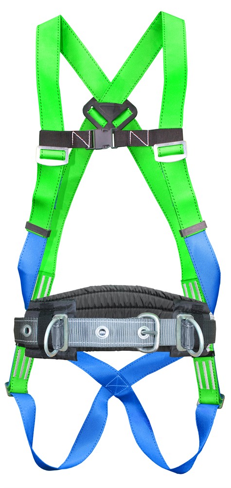 Состоит из ремня с пряжкой, наплечных и набедренных лямок, уширенного (широкого) кушака, двух D-колец на поясе (для удержания и позиционирования) и одного на спине (для страховки или спасательных работ и экстренной эвакуации). Пояс упакован в водонепроницаемый пакет и содержит паспорт и инструкцию по применению.