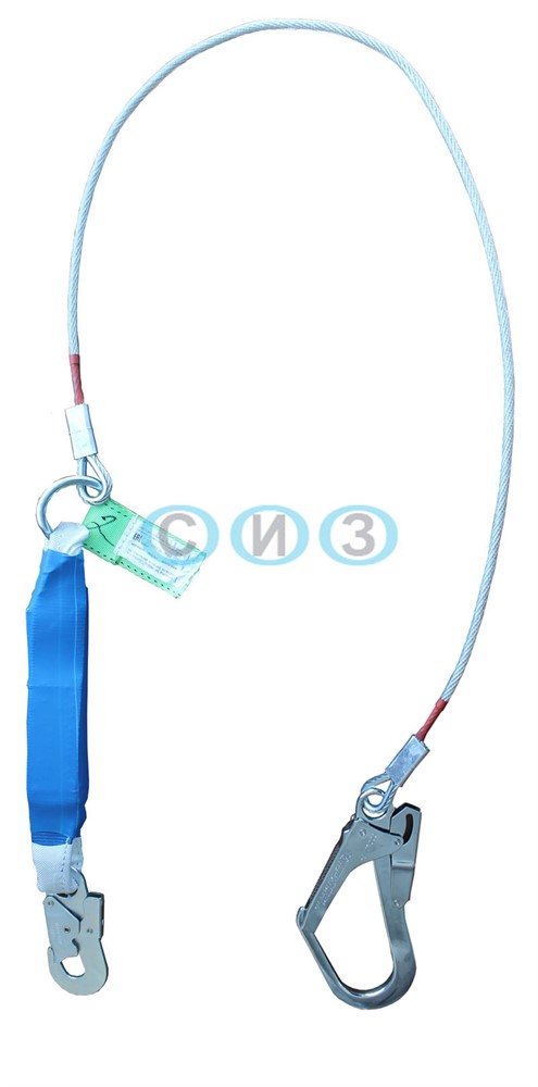 Строп аБ К50+К20 NL - страховочный строп из металлического троса в ПВХ оболочке с амортизатором, с одним большим монтажным карабином и одним малым монтажным карабином