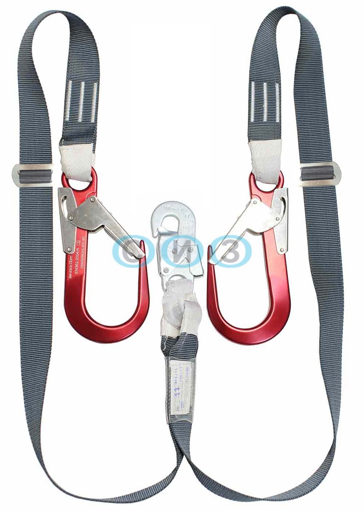 Строп Адрег К60+К20 NL - страховочный регулируемый строп, двойной (двуплечий) из полиэфирной ленты, с двумя большими монтажными карабинами и одним малым монтажным карабином