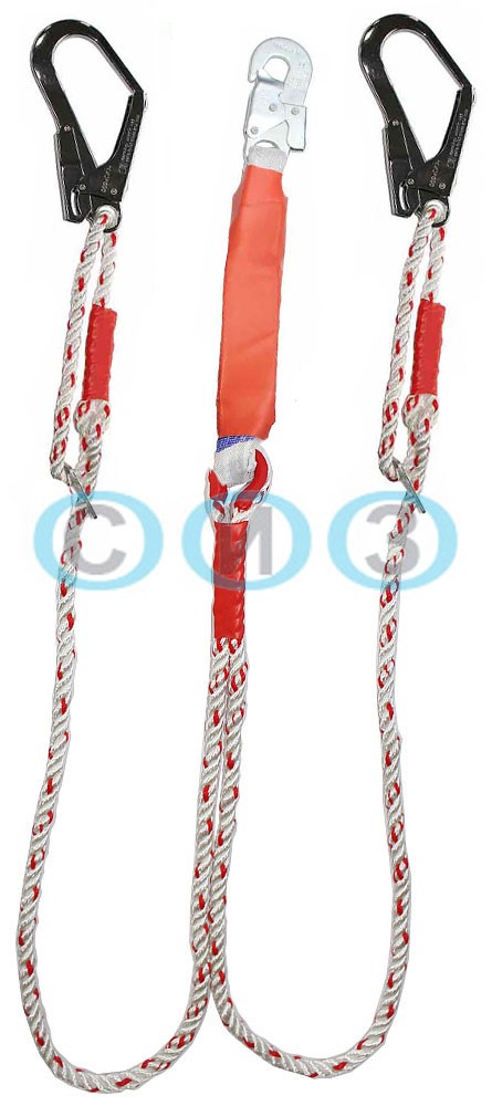 Строп аВдрег К50+К20 NL (канат) - страховочный регулируемый строп, двойной (двуплечий) из полиамидного каната с амортизатором, с двумя большими монтажными карабинами и одним малым монтажным карабином..