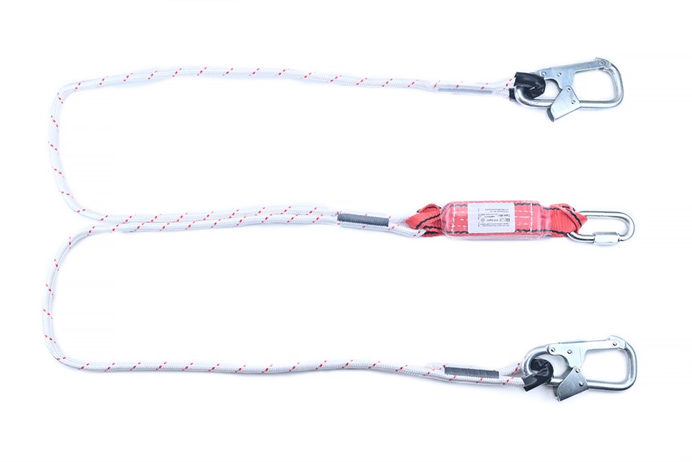 Строп аВд+Кс (канат в оплетке) - страховочный строп, двойной (двуплечий) из капроновой верёвки с амортизатором, двумя монтажными и одним соединительным карабином.