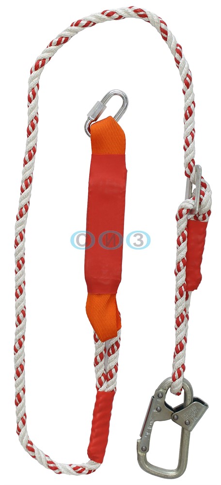 Строп аВрег+Кс (канат) - страховочный строп из регулируемого полиамидного каната с амортизатором, монтажным и соединительным карабином