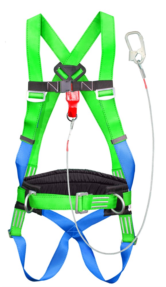 УС 2 аБЖ Ук - Страховочная система с наплечными и набедренными лямками, уширенным кушаком, со стропом из металлического троса в ПВХ оболочке с амортизатором.